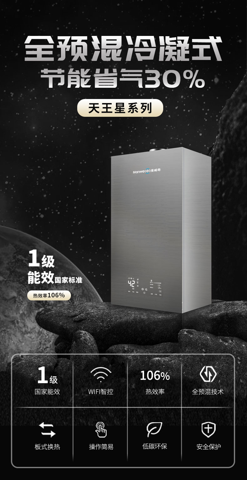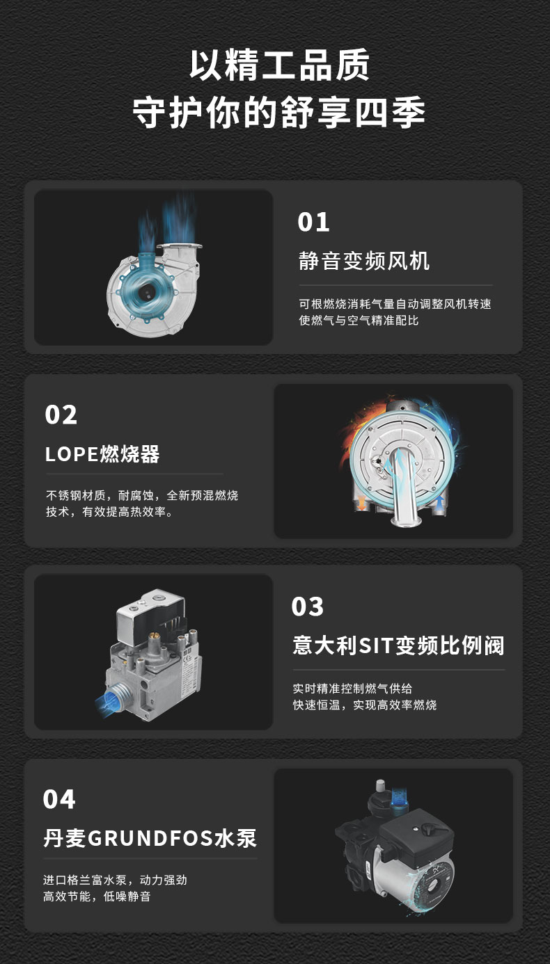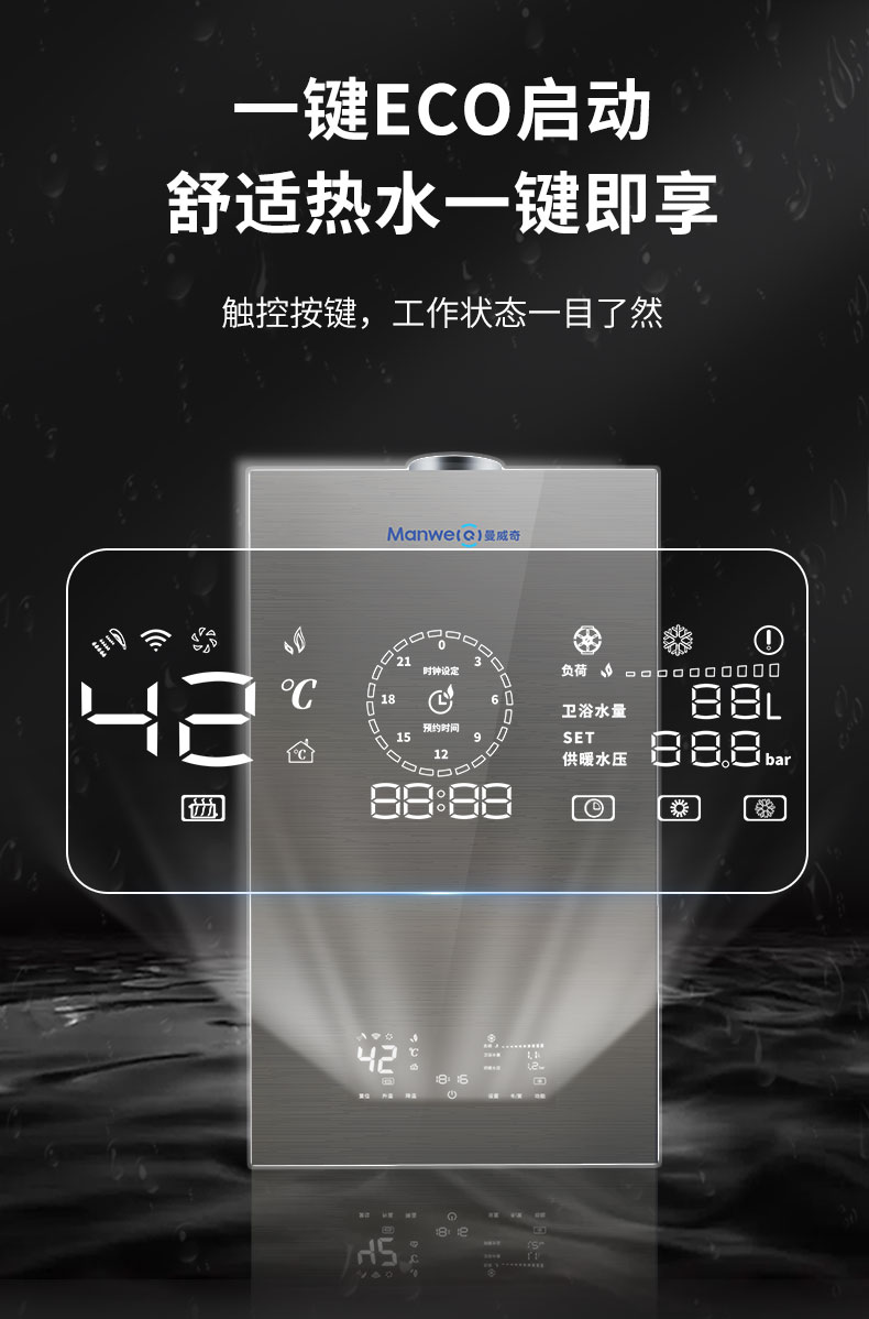 核心部件均源自歐州,性能更穩(wěn)定,抗垢能力強,適用各種水質(zhì),使用壽命長多重智能變頻調(diào)節(jié),高效恒溫,讓體感更舒適,7天24小時定時編程功能,可隨意設計工作時段及溫度,滿足節(jié)能及個性化需求。